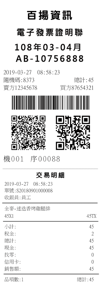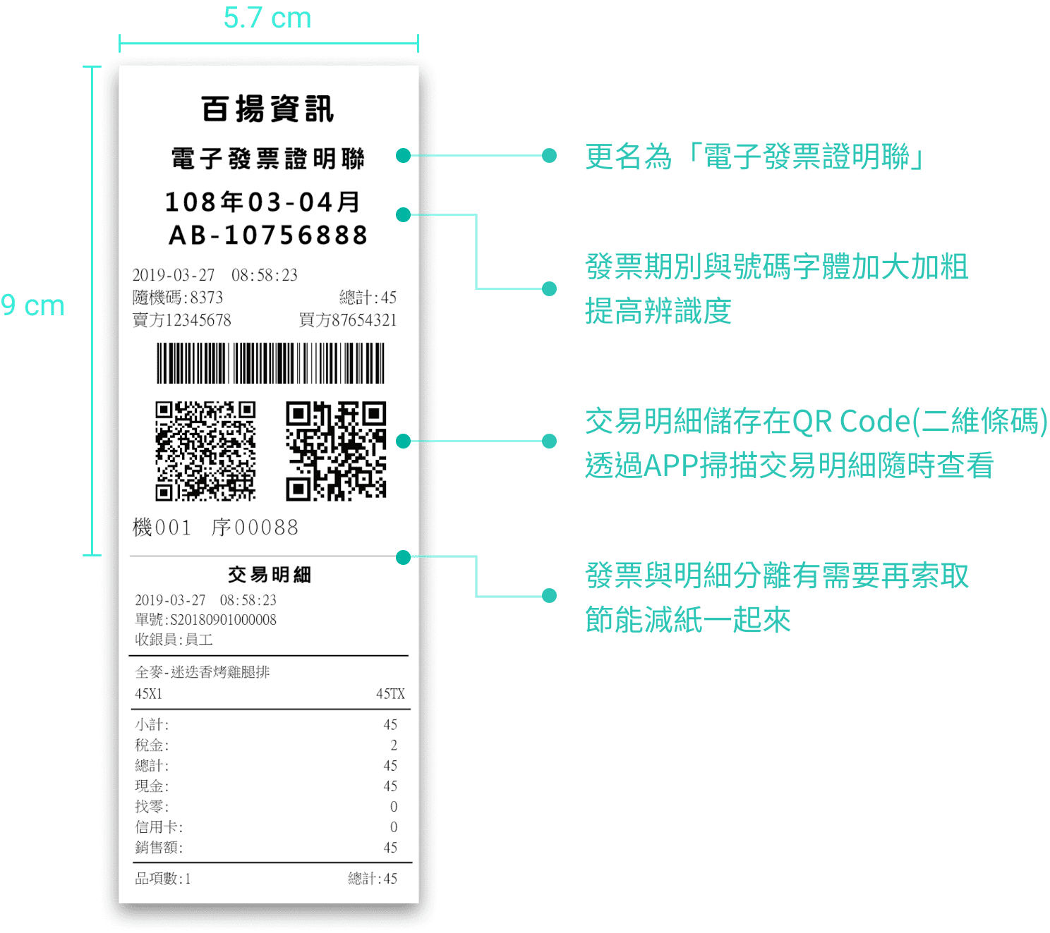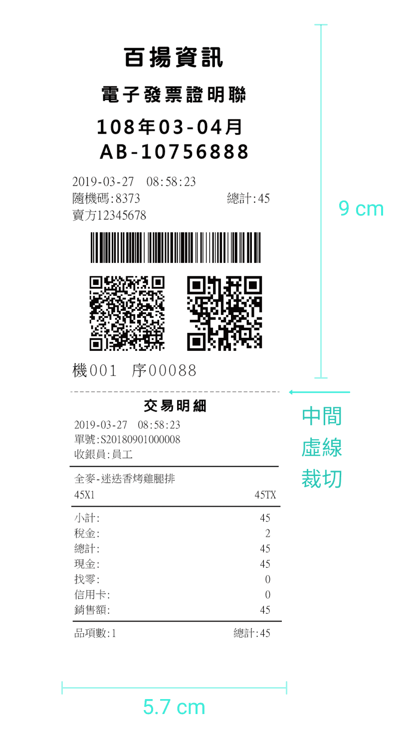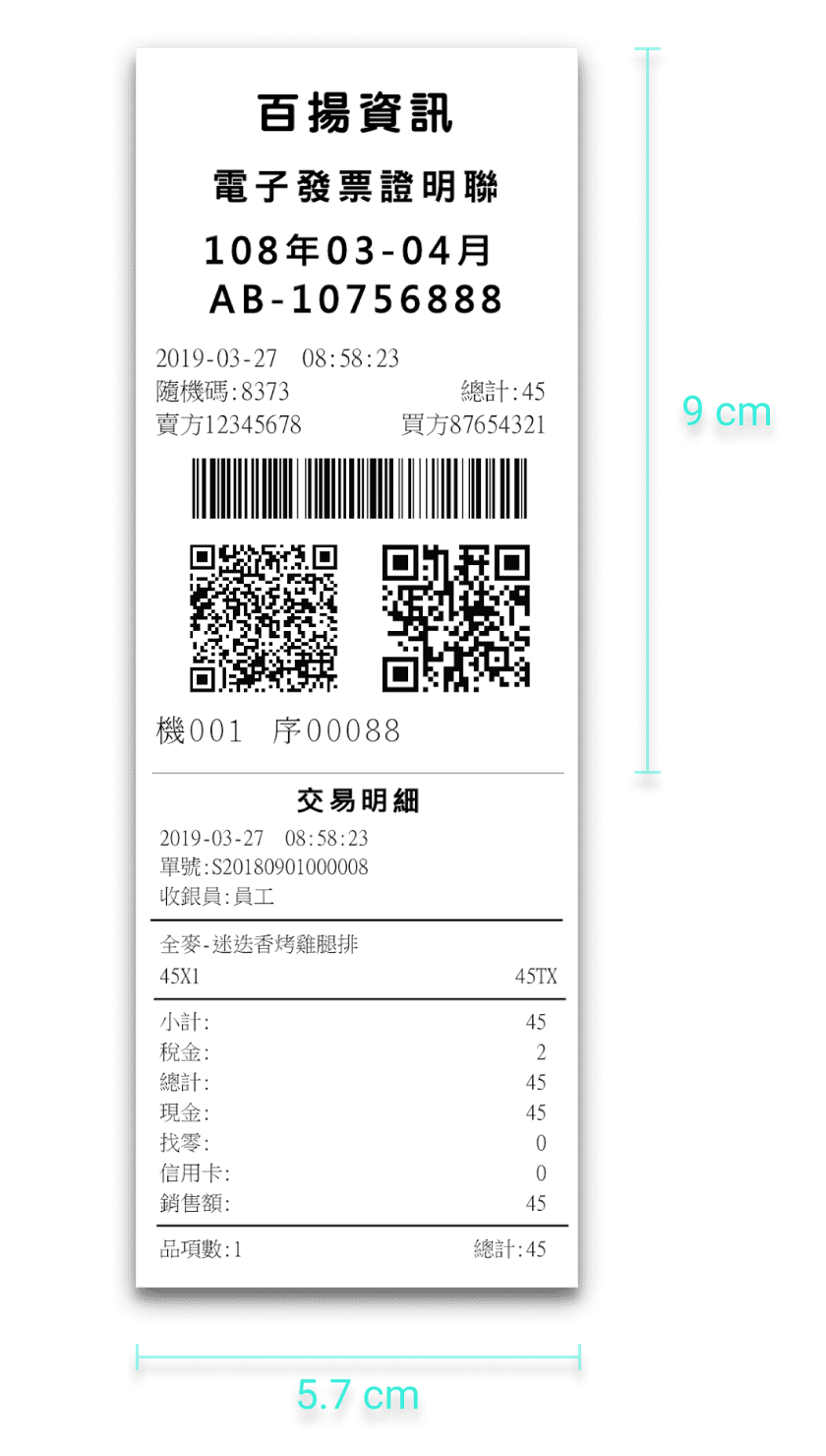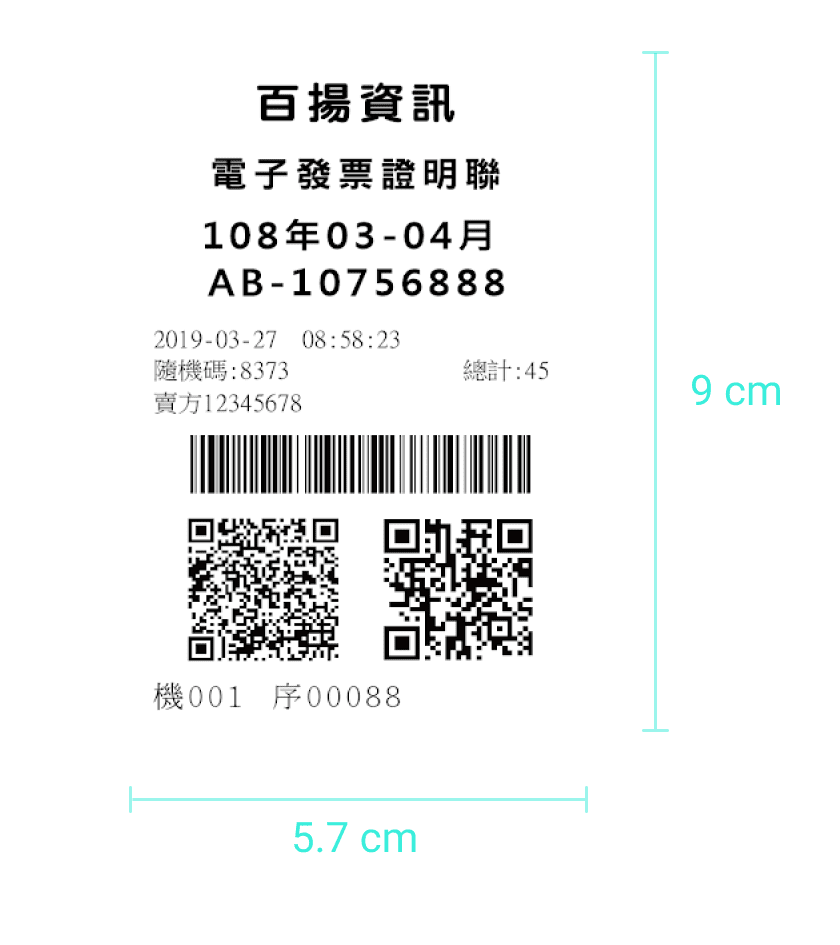 企業對消費者(B2C),證明聯規範是以5.7 cm x 9 cm的發票格式交付給買方,