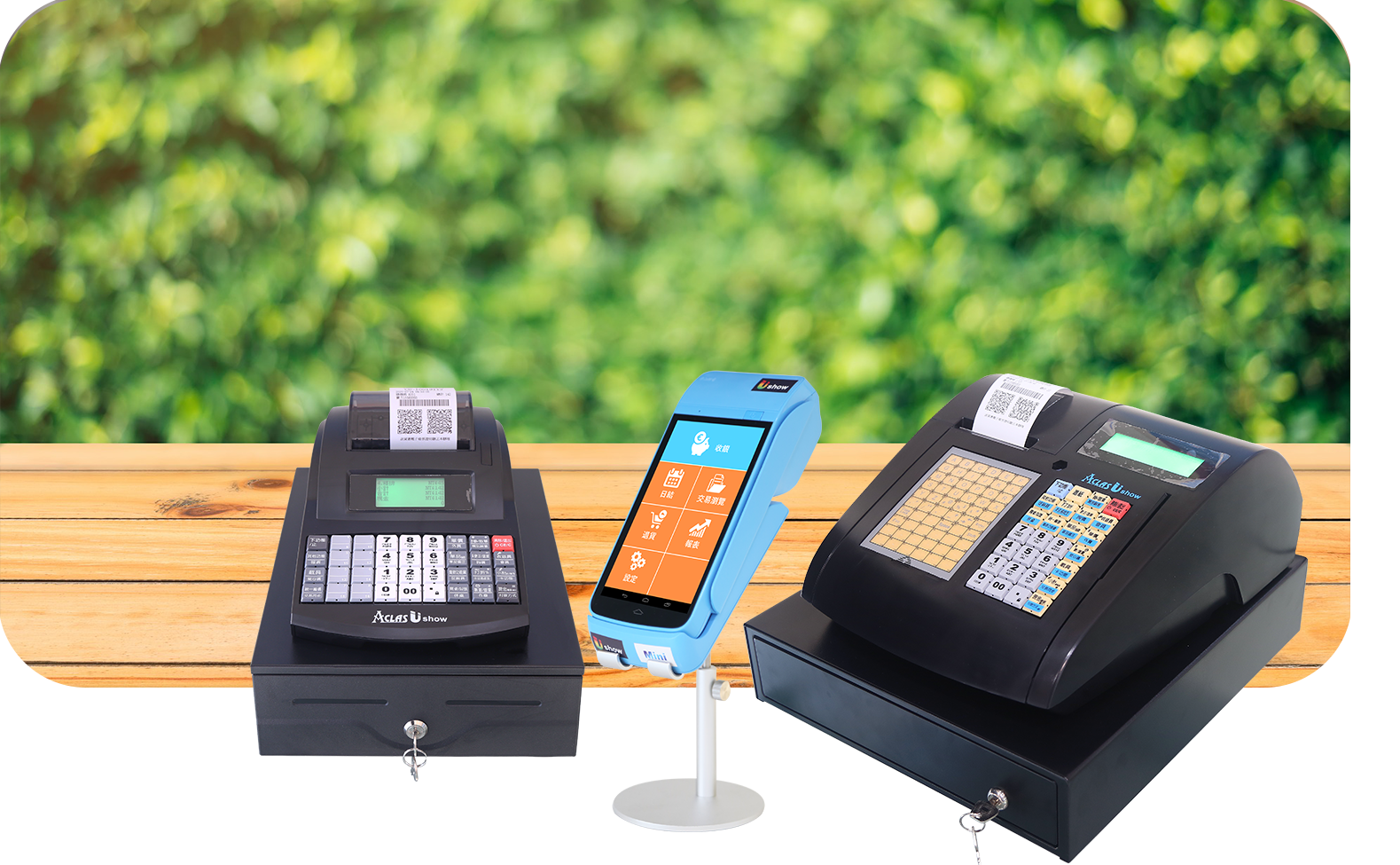 2.通用型支架 3.錢櫃 (其餘硬體設備皆自行購買或洽詢租賃) |