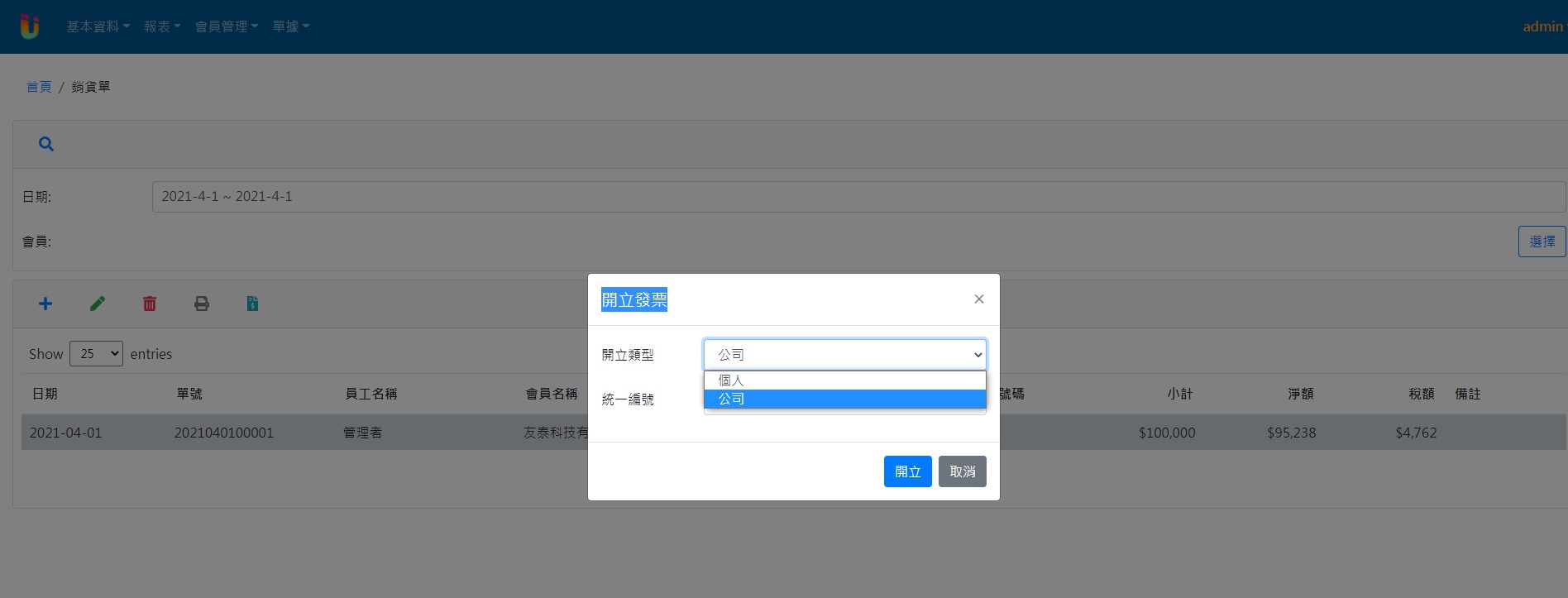 開立張數