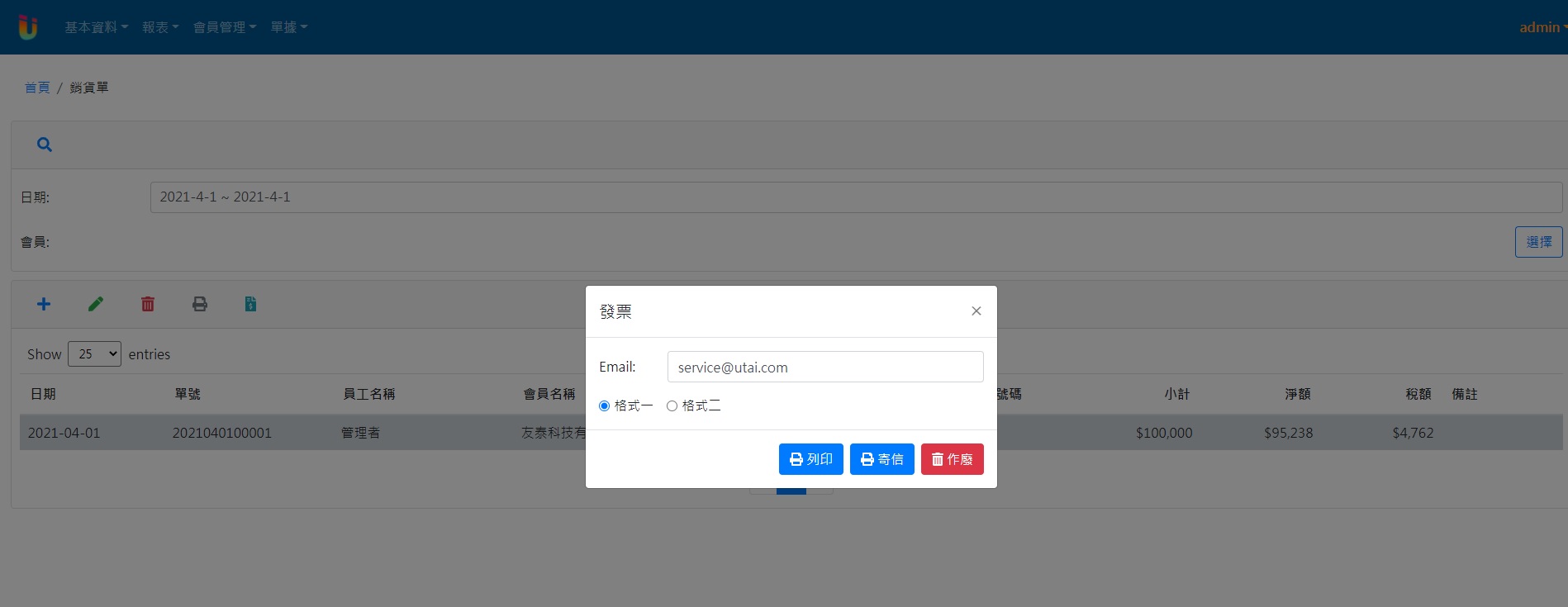 ✔B2B 發票格式一(5.7cm)或格式二(A4)選擇